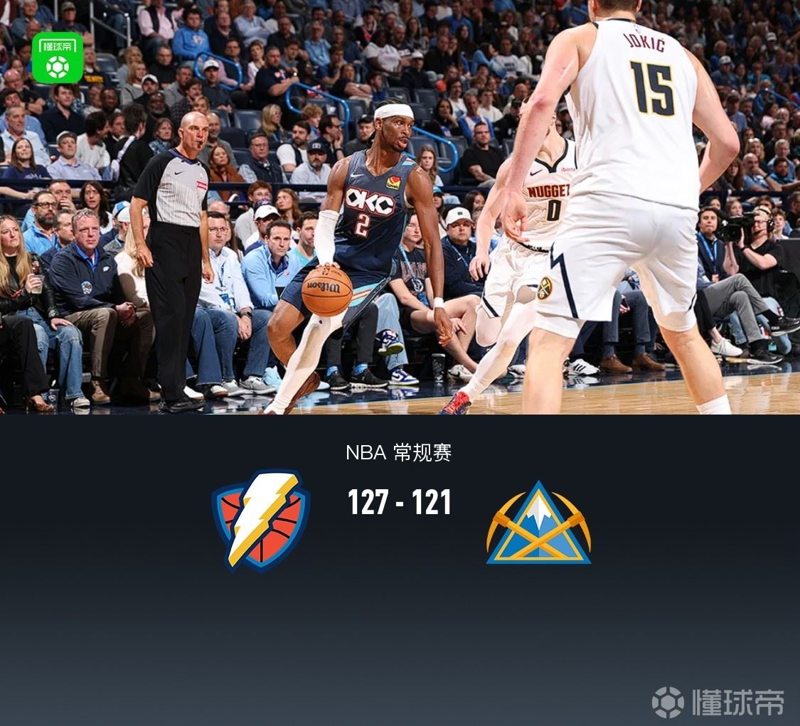 雷霆加时127-121掘金,亚历山大复出36+9,约基奇23+17+14,穆雷39分 北京时间2月28日NBA 常规赛,俄克拉荷马雷霆对阵丹佛掘金。本场雷霆亚历山大迎来复出。开场掘金一度领先6分,随后雷霆展开追分,半场掘金59-50雷霆,第三节结束掘金仍领先6分,末节初 2026-02-28